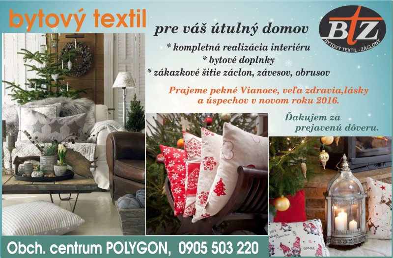 Pri šití na mieru dbáme v prvom rade na kvalitu materiálov i samotného prevedenia. Sme firma s ročnou tradíciou v šití závesov a záclon. Počas nášho pôsobenia sme realizovali množstvo zákazok nielen pre byty a rodinné domy, ale aj pre . Nechajte si svoje závesy , obrusy alebo vankúše ušiť presne podľa vášho želania! V oddelení textilu si vyberte látku, rozmyslite si štýl a uveďte . Produkty bytového textilu – závesy , záclony, vankúše, obrusy, rímske rolety,. Zaoberáme sa šitím klasických dekoračných závesov , ale tiež vzatemňovacích závesov na míru.